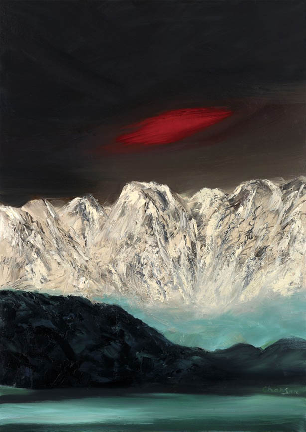 《玄山.向本心雪山的精神朝圣》 站在《玄山》前,遇见的从不是一座具象的雪山,而是一场向内心深处进发的精神朝圣。这幅偏具象的山水,没有传统文人画的避世悠然,却以冷冽的色彩、粗砺的肌理,敲打着我们的精神世界,让心绪与画境瞬间相融,在庄严静穆里,看见生命最本真的模样。 故事的开篇,是暗夜笼罩的雪山天地。画面里的雪山莹洁泛白,浑厚粗砺的肌理像被岁月风霜刻满的生命轨迹,每一道笔触的棱角,都是沧桑磨出的厚实,这不是自然雪山的复刻,而是我们内心深处,那座藏着坚韧与纯粹的「本心雪山」。近山的阒黑如沉郁的现实底色,将雪山的莹白衬得愈发庄严,站在这里,仿佛能听见自己的心跳,与雪山的静穆共振,生出一种向本心朝圣的虔诚。 而夜空中那抹鲜红如血的彤云,是画面里最具张力的灵魂笔触。冷冽的黑白灰之间,这抹红像一道惊雷划破暗夜,既带着生命的炽热,又藏着精神的觉醒。在沉郁的现实里,总有一抹属于本心的红,在暗夜中燃烧,提醒我们即便历经沧桑,内心的纯粹与热烈也从未熄灭。 当我们凝视这幅画久了,便会忘记眼前的色彩与肌理,陷入一种仿佛触碰前世记忆的感动。这是因为尘三的山水从不是用来「看」的,而是用来「遇和」的:当我们睁开心眼,让心灵的频率与画面接通,便会瞬间融入画境,成为向内心雪山朝圣的行者。雪山的莹白是本心的纯粹,近山的阒黑是现实的磨砺,彤云的鲜红是精神的火种,三者相融,便懂了创作内核:山水是精神之境的载体,而真正的朝圣,从来都是向自己的本心走去。 《玄山》最终以沉静的画面,给出了最震撼的精神叩问:你的本心雪山,是否还在暗夜中莹白如初?而你,是否敢踏上这场向内心的朝圣之旅?
