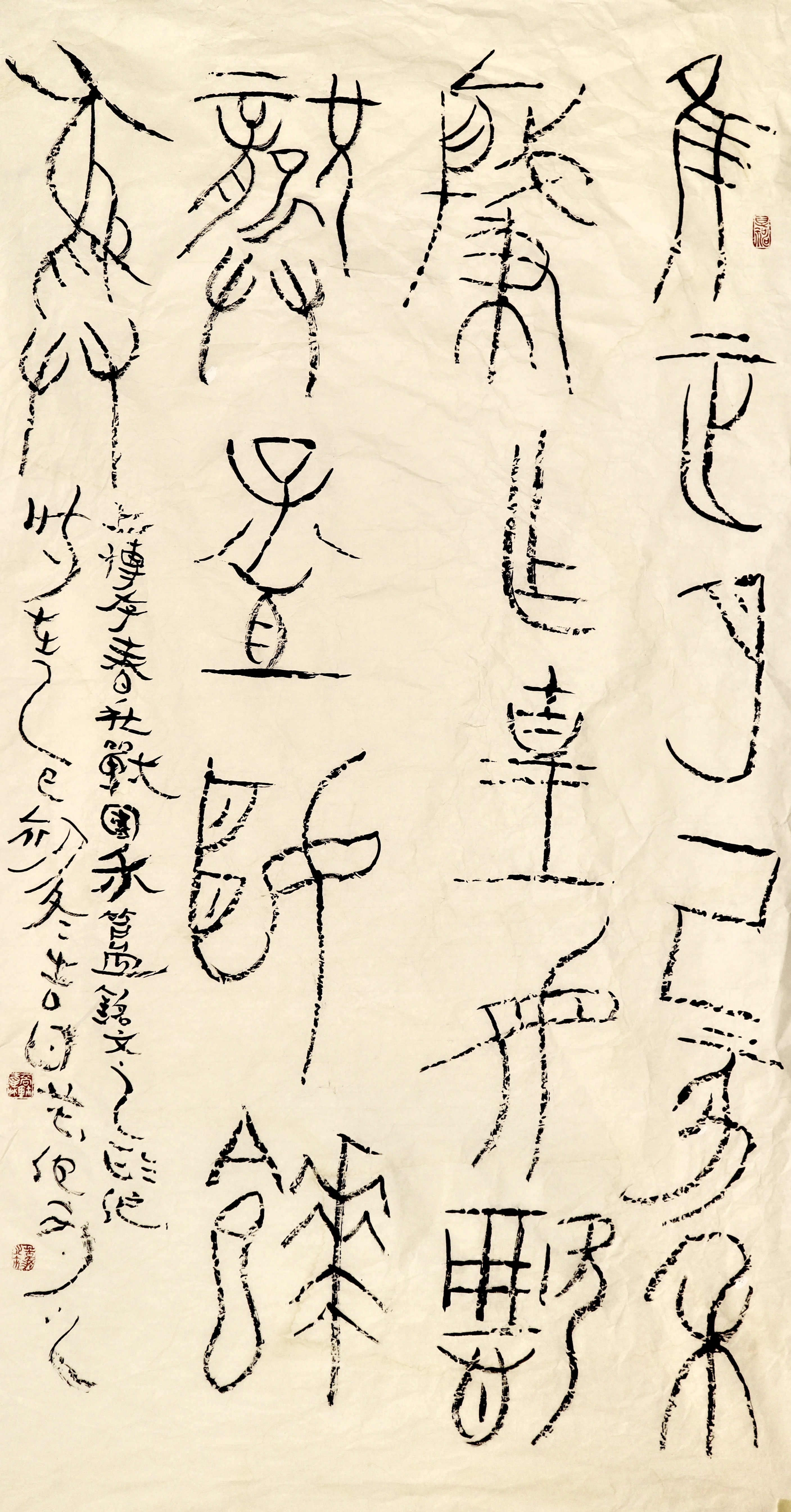 春秋戰國齊系金文《禾簋》銘文臨作,據有道軒上海博物舘“商周秦漢金文現場觀摩”圖片。Recreation of bronze inscriptions from the Chun Qiu period, Calligraphy by Delin Shang in East LA.