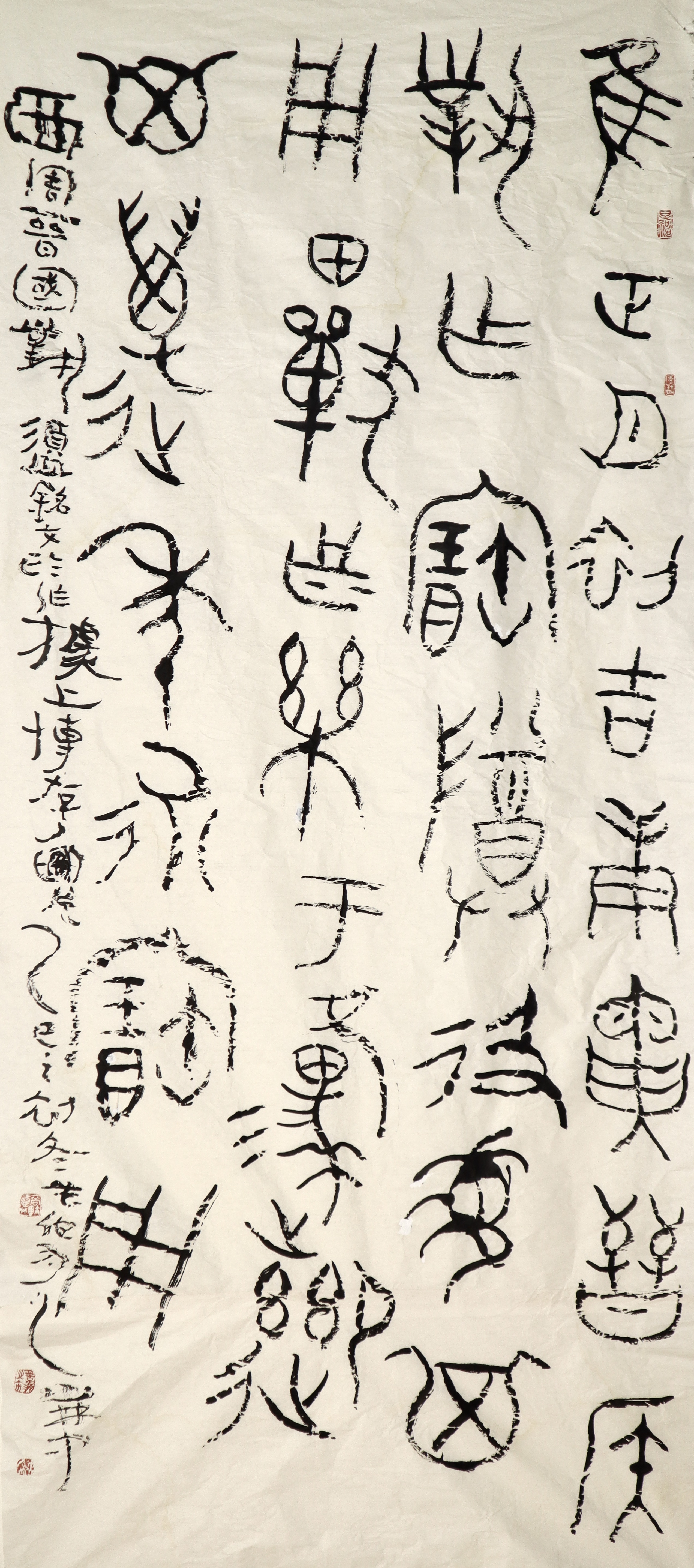 西周晉國金文《晉侯對盨》銘文臨作之一。據有道軒上海博物舘“商周秦漢金文現場觀摩”圖片。Recreation of bronze inscriptions from the Xi Zhou dynasty, Calligraphy by Delin Shang in East LA.