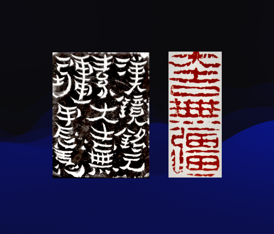 擬漢代銅印篆刻書畫閒章:大吉無疆,可用於引首章、腰章(也稱攔邊章)。Theme story seal engraving, Artwork by Delin Shang in east LA.