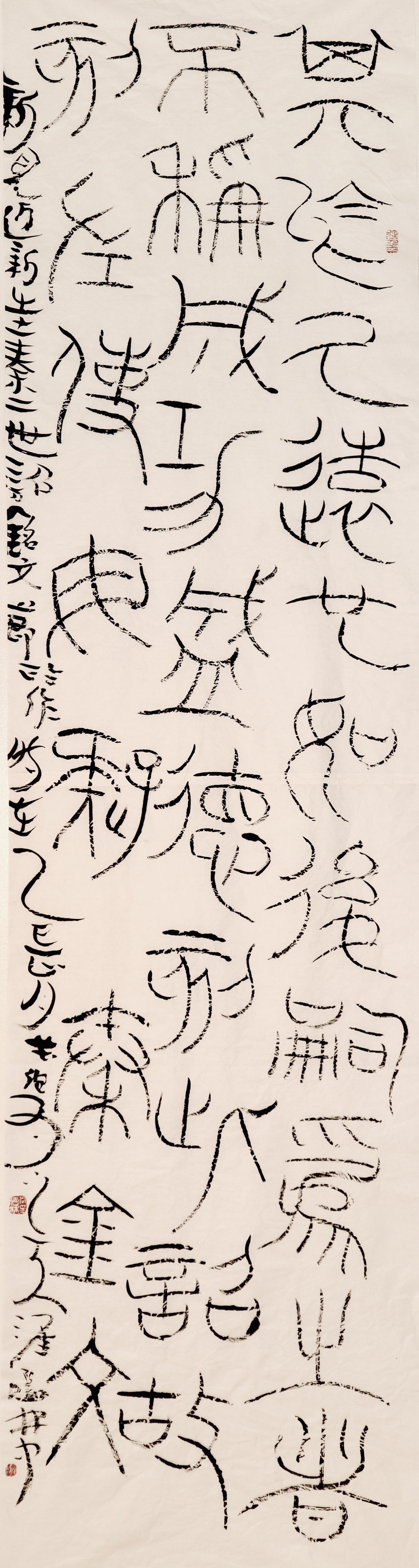 新見秦金文《二世詔版》銘文節臨作。1982年出土咸陽,銘文極具大篆氣象,凝鍊且圓潤,在秦代詔版中稀見。據陝西文物考古所影本。Recreated Qin dynasty bronze inscriptions and calligraphy artwork by Delin Shang in east LA.