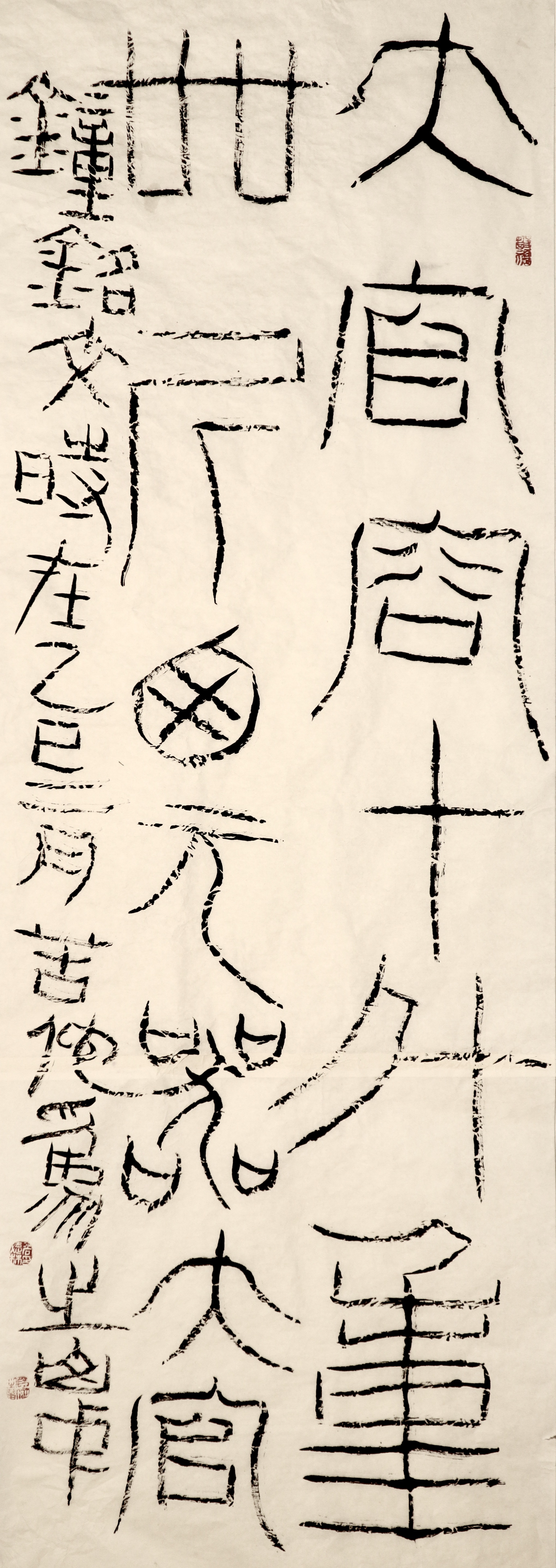 西漢金文精典《大官鐘》銘文再臨作。1995年出土西安。應西安藏家誌念《大官鐘》出土五十週年囑書而作。Recreated Han dynasty bronze inscriptions.Calligraphy Artwork by Delin Shang in East LA.