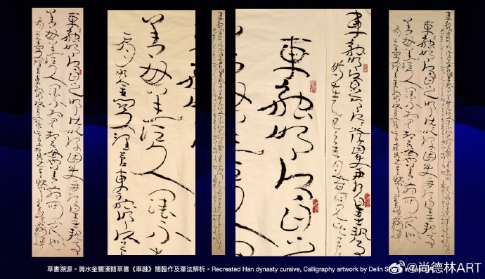 草書溯源。肩水金關漢簡草書《車融》簡臨作及筆法解析(八尺對開,長峰羊毫)。Recreated Han dynasty cursive, Calligraphy artwork by Delin Shang in East LA.