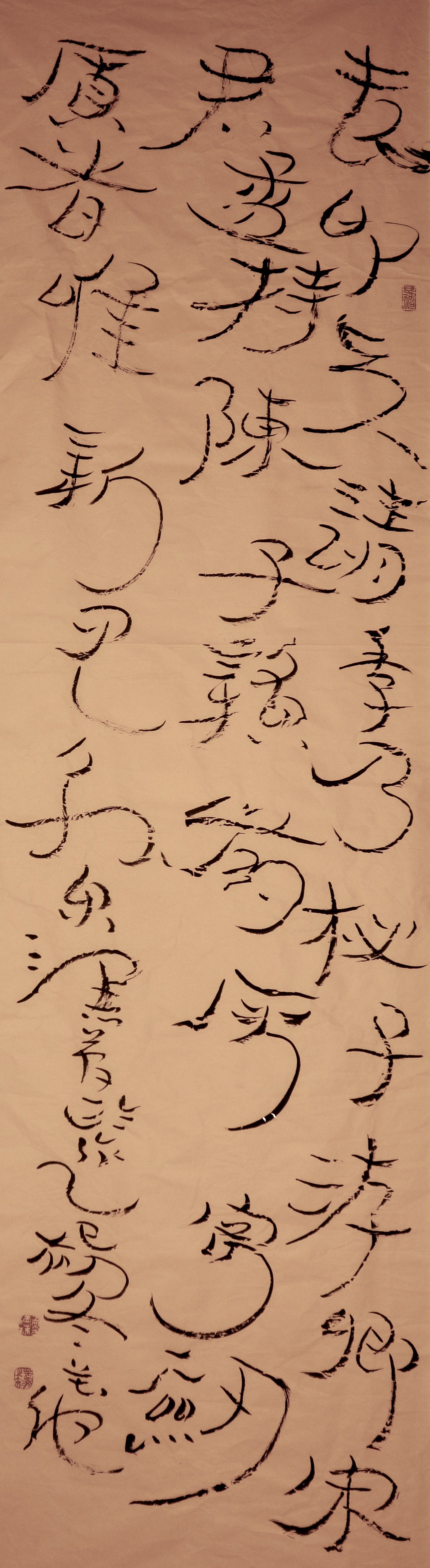 敦煌懸泉漢簡《養叩頭請》木牘草書臨作及章法解析。Recreation of writing on a wood strip in cursive, Calligraphy by Delin Shang in East LA.