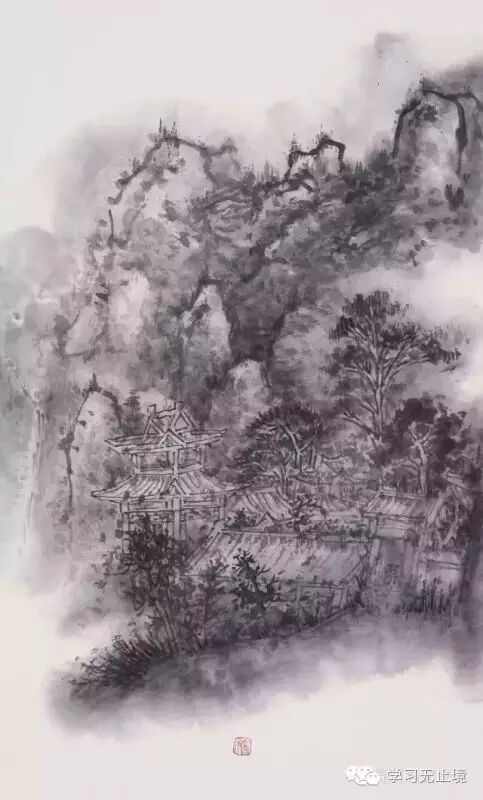 4.通过临摹古代、现代山水、风景经典作品,了解水墨风景形成的地缘和地域因素,找寻自我发展和研究的方向。
