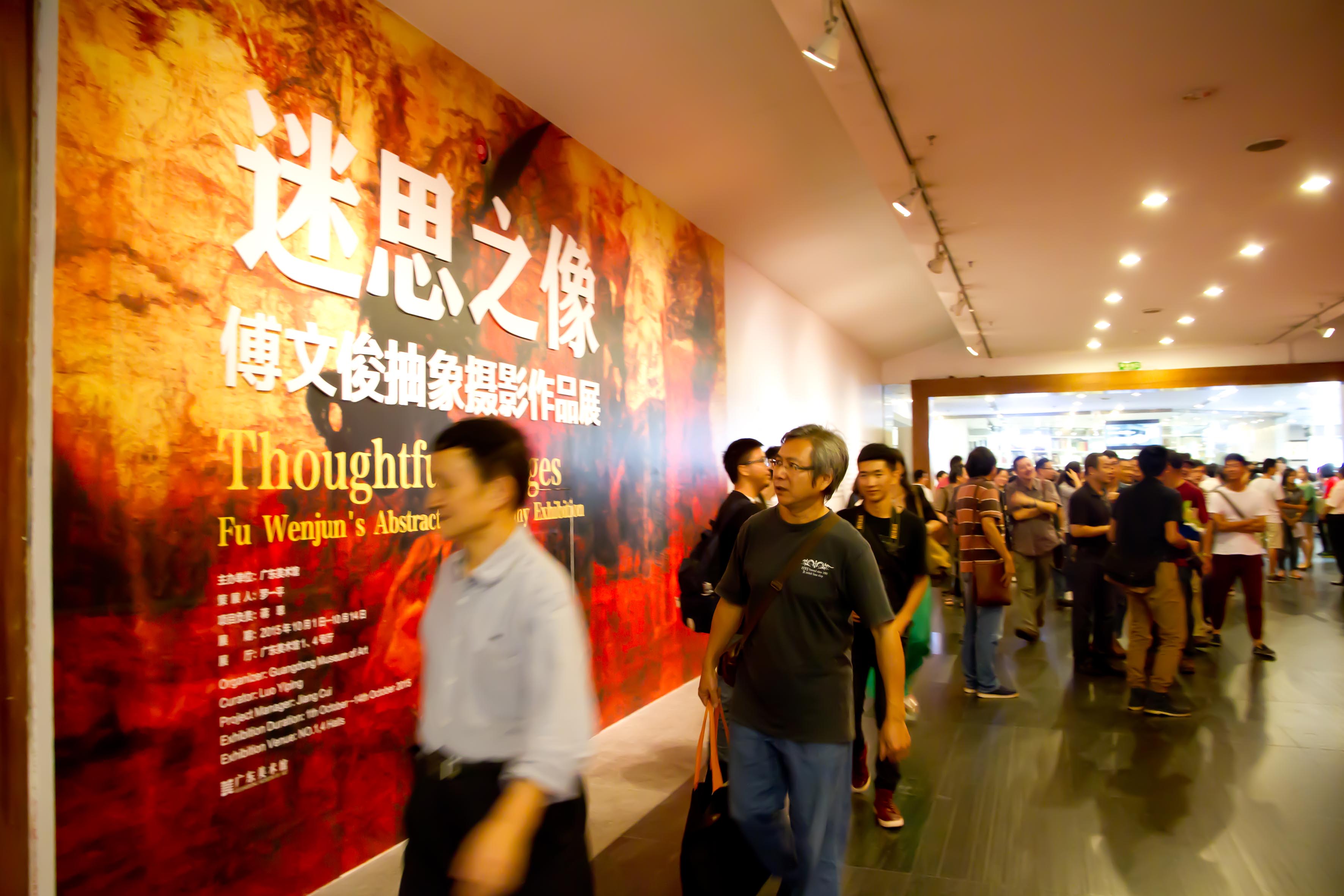 迷思之像——傅文俊抽象摄影展于2015年10月1日在广东美术馆一楼隆重举办。恰逢十一长假前来参观的观众络绎不绝。许多观众久久矗立于作品前不愿离去,同时大尺幅的视觉冲击力也吸引了不少同为专业摄影艺术家的关注。广东美协会主席许钦松先生在策展人、广东美术馆馆长罗一平的陪同下,到访参观并对傅文俊的作品予以肯定与欣赏。