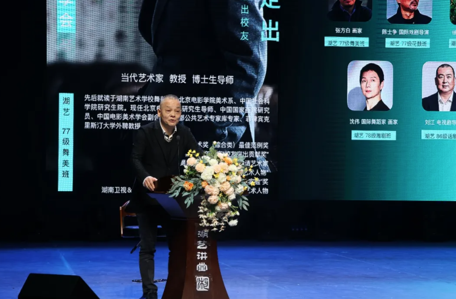 11月19日下午,实验剧场座无虚席,湖南省艺术学校1977级舞台美术专业杰出校友、北京电影学院当代艺术研究院执行院长、教授,中国国家画院研究员、博导,中国电影美术学会副会长冯放来到湖艺大讲堂。他以“从岳麓山畔走出——湖艺改革开放后首批杰出校友”为主题,为师生们带来了一场内容深刻、视野开阔的讲座。
