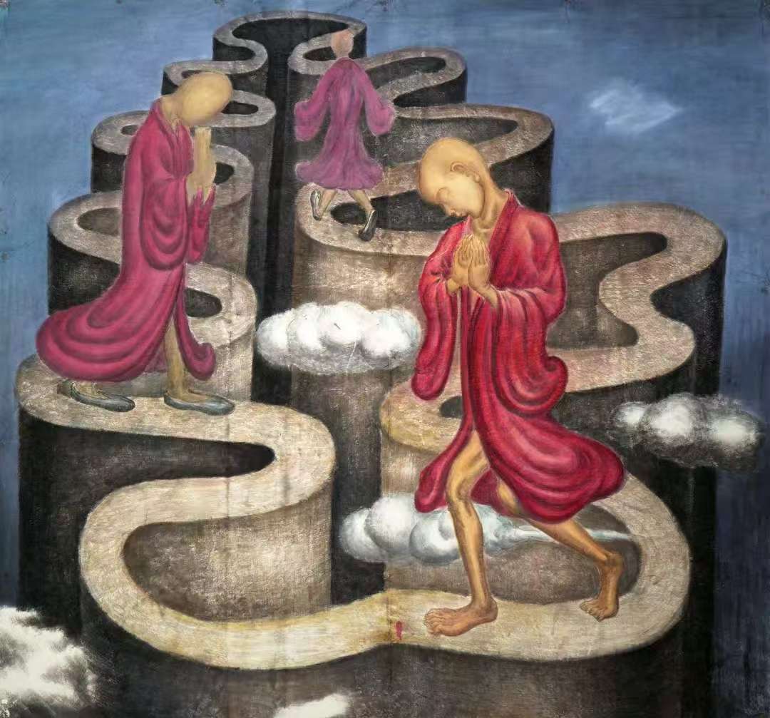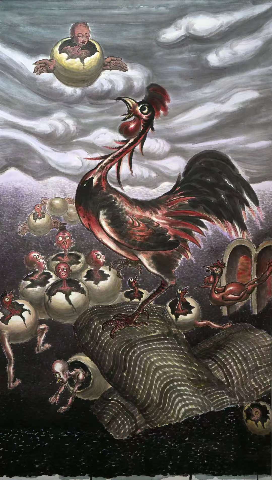 近十年来,韦申以“超梦想艺术”系列为主线,完成了一场将超现实主义精神与东方文化意趣相融的深度探索。这场探索不仅关乎形式语言的演进,更是一次贯穿艺术家生命体验的精神远征。他的作品如同一部视觉自传,忠实记录着人在社会洪流中的挣扎、求索与蜕变,最终指向灵魂的重生与升华。