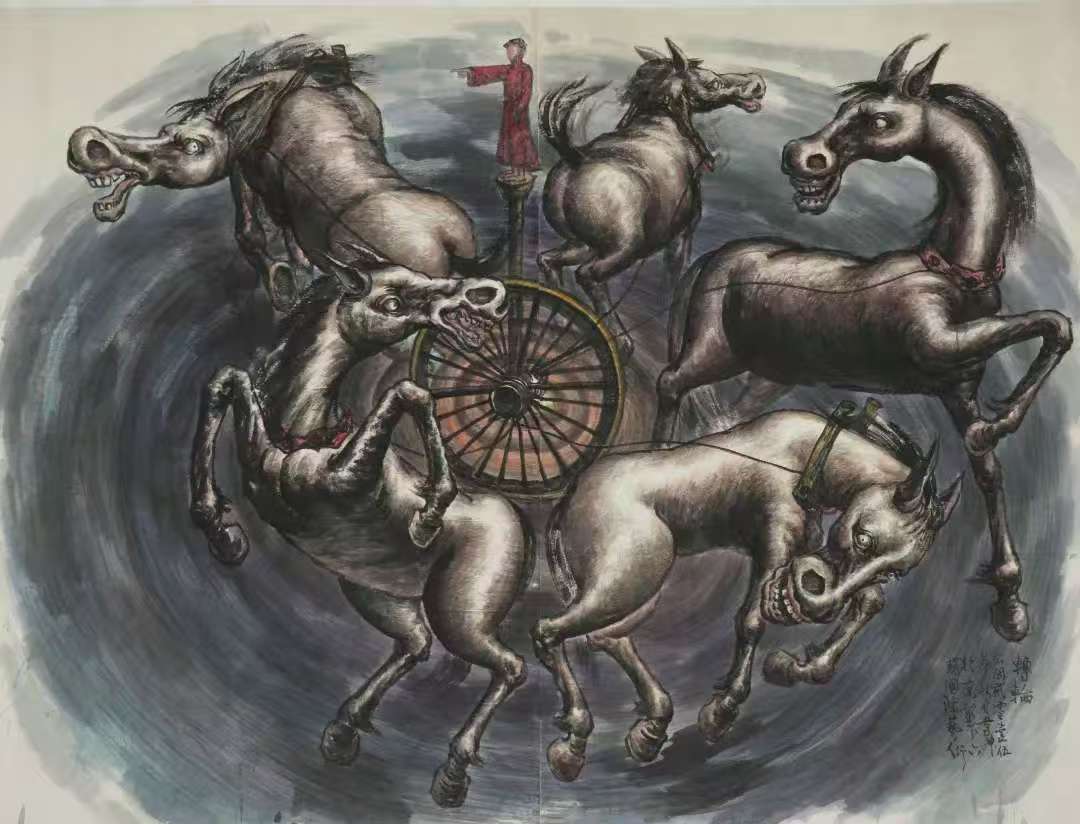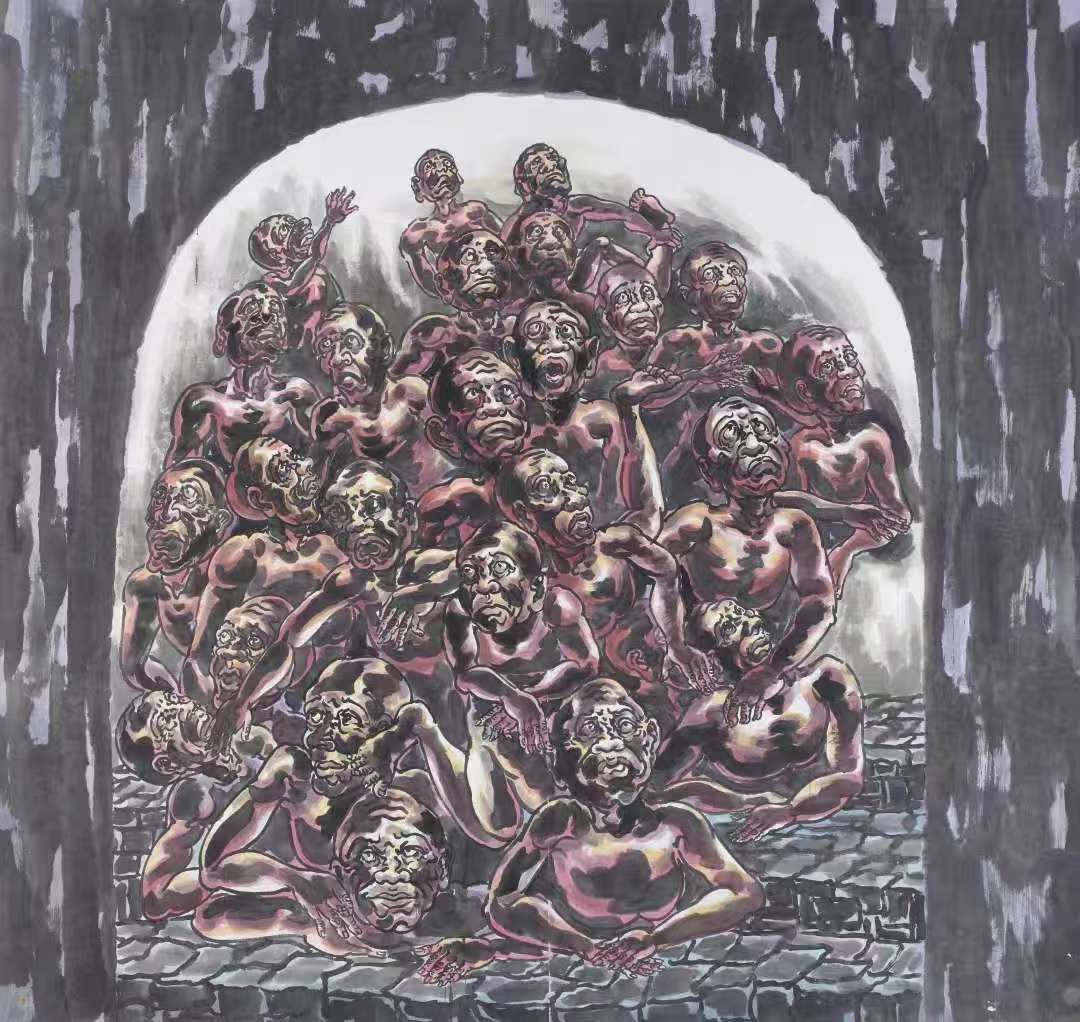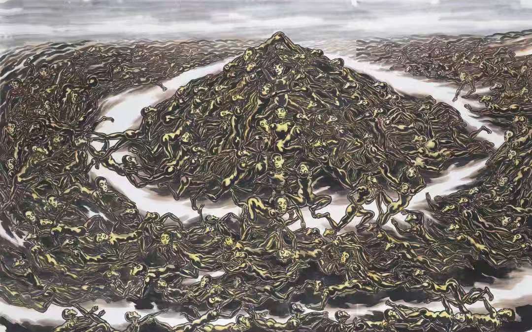 《众生相系列-众生》 纸本水墨 180×288cm 2020