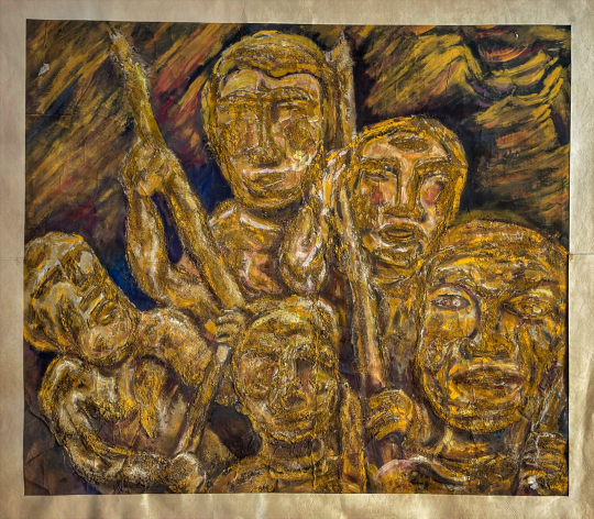 五大系列虽题材各异,却共同编织出一方完整的精神场域:从 “天籁” 系列对自然韵律的诗意捕捉,到 “人山人海” 对群体生态的精微描摹;从 “石窟” 系列对个体情感的沉郁倾诉,到 “众生相” 对生命意义的哲学追问,每一幅作品都是艺术家精神的自我梳理,亦是情绪的自然流泻。其创作根系深植于双重文化土壤 —— 广西天峨的乡土肌理赋予作品原生的生命气息,波士顿、阿姆斯特丹的异域文化浸润则拓宽了艺术视野的边界。二者并非割裂的创作片段,而是凝练成艺术语言的养分,笔下独特的集群图式绝非简单符号拼贴,而是大众共通情感的视觉转译,能让不同文化背景的观者皆能触碰到作品深处的精神脉搏。