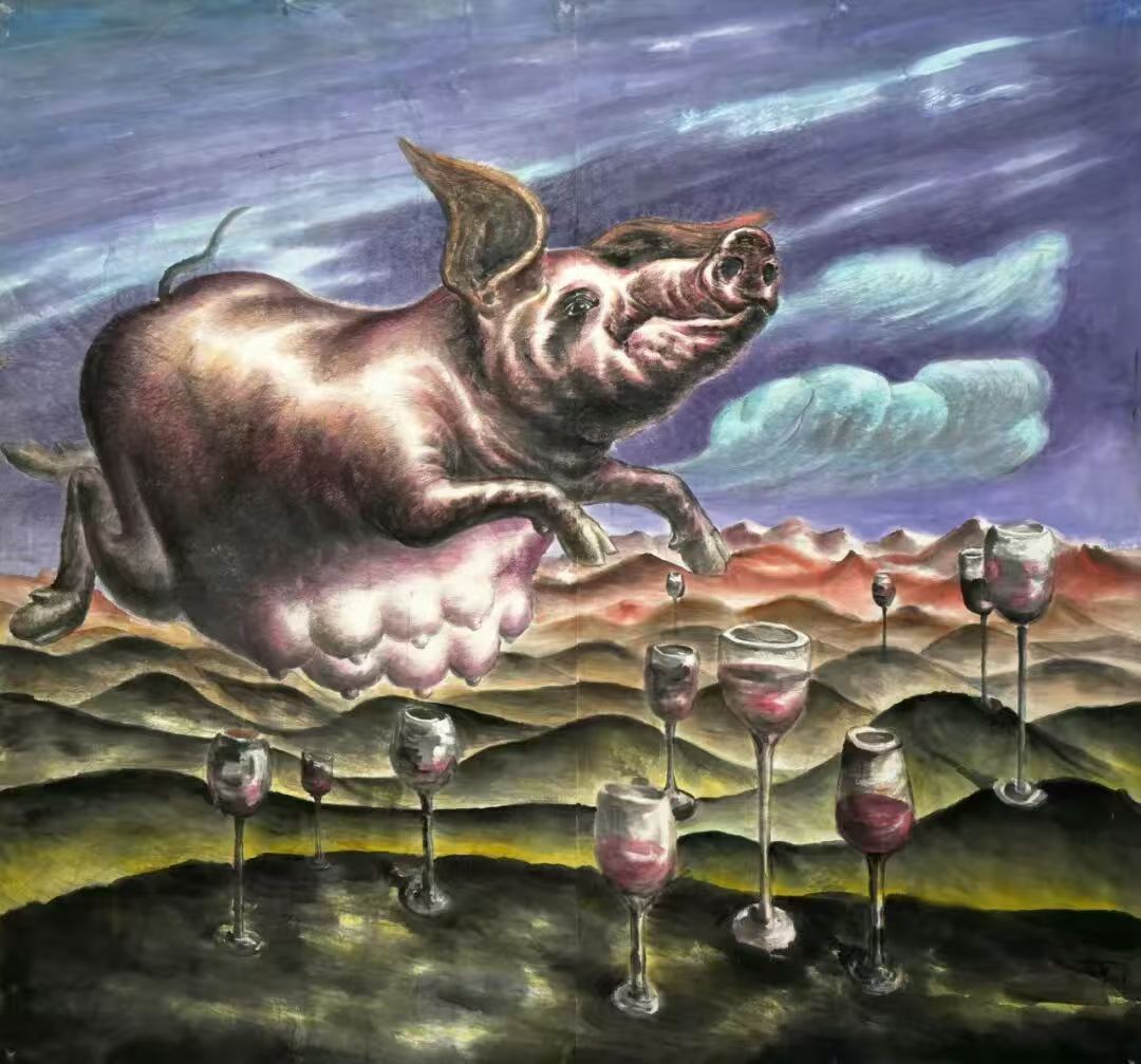 尤为可贵的是,韦申的艺术始终怀有深切的人文关怀与社会观照。他的作品既避免陷入纯粹形式的游戏,亦不曾筑起晦涩的精英高墙,而是以可感可触的视觉叙事,搭建与公众对话的桥梁。无论是对群体命运的隐喻,还是对精神逍遥的向往,抑或对传统文化符号的化用,均使他的超现实主义探索浸染了东方特有的宇宙观与生命哲学。他的艺术因而成为一场双向的旅程:既向内探入潜意识的深渊,亦向外投射出对时代与人性的诗性注视。